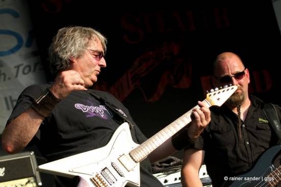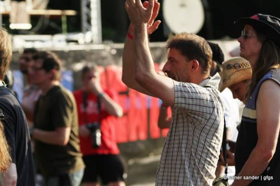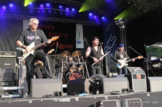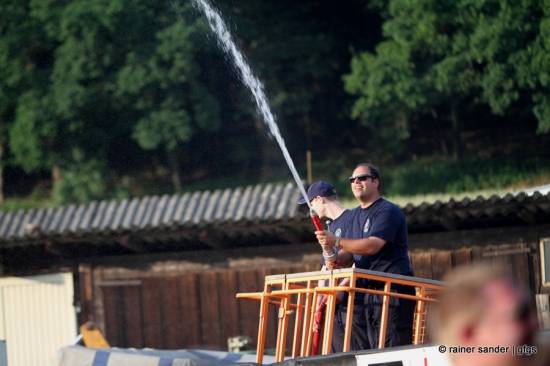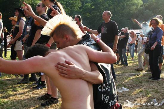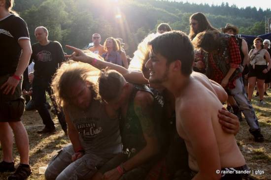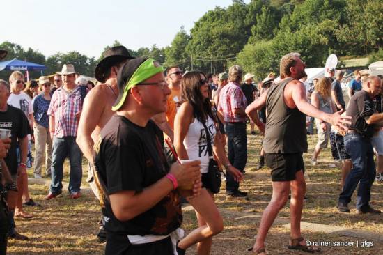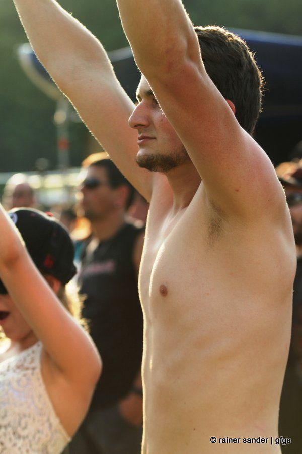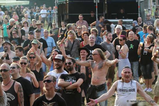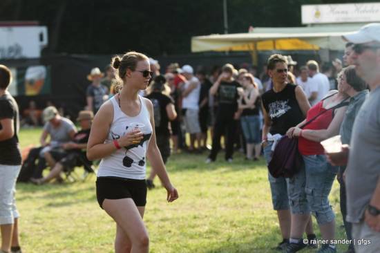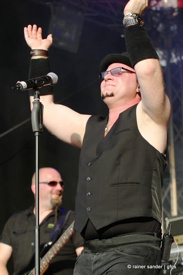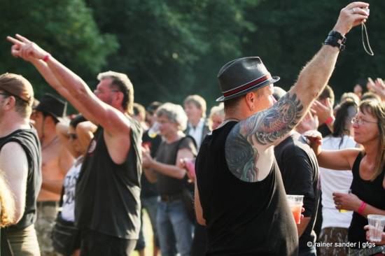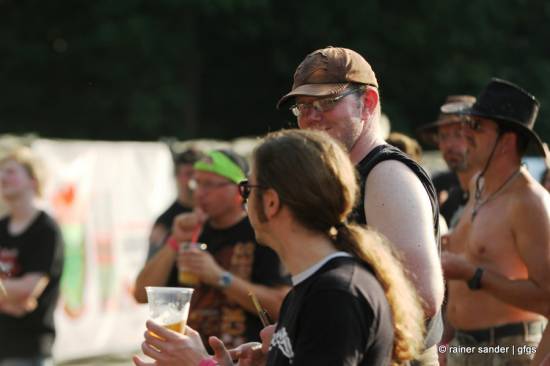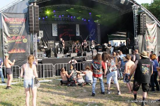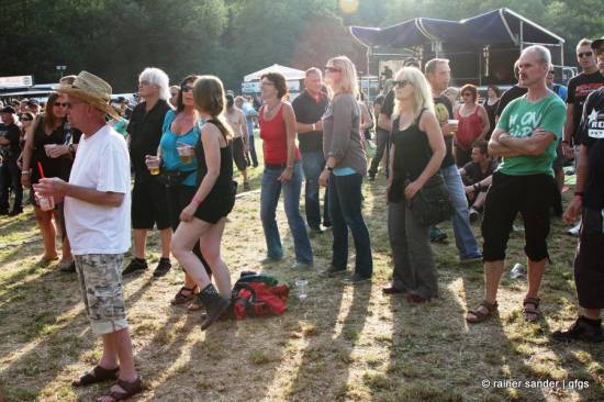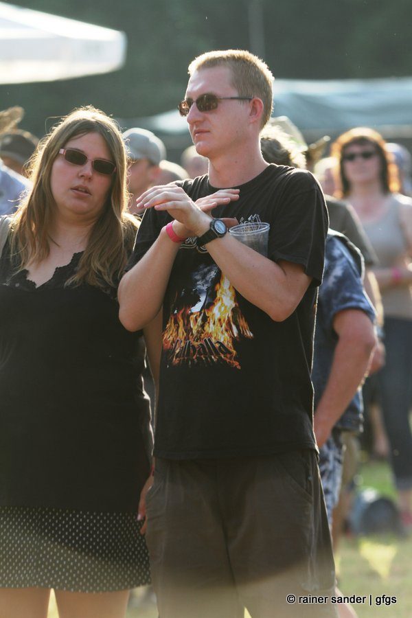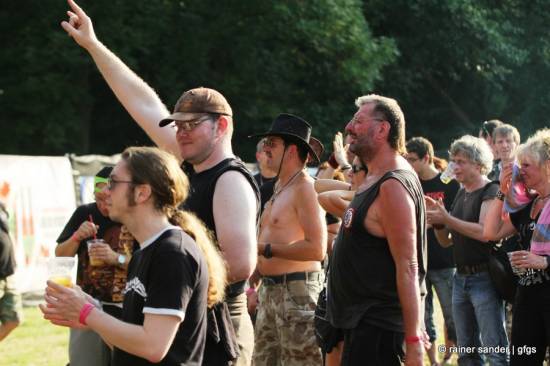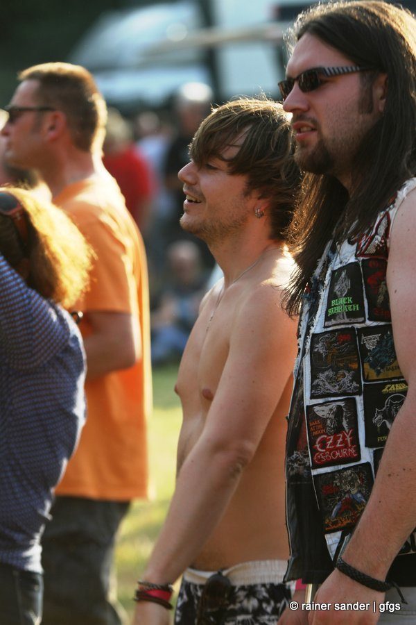 Das Festival hat aufgerüstet, mit einem Line-Up, das sich hören – und sehen – lies: „Bushrockers“, „Tonloch“, „Last Jeton“, „Steven Stealer Band“, „nulldB“, „Doro“ und „reached“. Das Publikum ging von Anfang an mit und schon die Steven Stealer Band – in der Region sonst selbst Headliner bei Festivals und zuletzt Support bei Slade und Sweet – brachte die vielen Besucher vor der Bühne in Stimmung. Ihre Version von Love Is Like Oxygene ließ sogar Doro in der Garderobe aufhorchen. Hinter der Bühne gibt es „Verbrüderungsfotos“ fürs Bandarchiv, vor der Bühne kühlte die Feuerwehr Geismar die erhitzten Körper mit der Spritze.