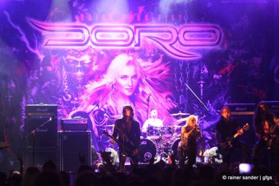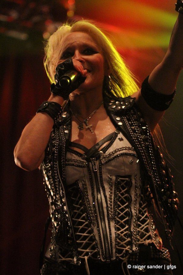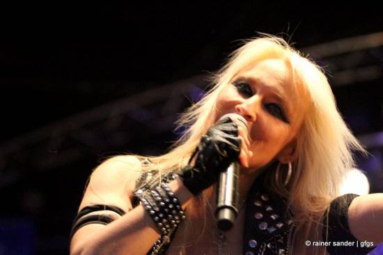 Doro steht seit 30 Jahren auf den Konzertbühnen überall in der Welt, aber in Fritzlar hat sie keine Minute benötigt um ihr Publikum zu fesseln. Außerdem gibt es keinen Zweifel daran, dass die meisten wegen ihr gekommen sind und denen gönnt sie bis zum Letzten Titel der Zugabe keine Atempause. Ein Riesen-Publikum wie in Wacken gibt es nicht, umso persönlicher ist Kontakt zwischen Publikum und Bands in Fritzlar Von Doro wünschte sich das Publikum „Revenge“ und die Queen spielte es. Und bei der Wacken-Hymne aus der Feder von Doro, „We Are The Metalheads“ wird’s ein wenig feierlich und Rock am Stück wird in Text mit eingebaut.