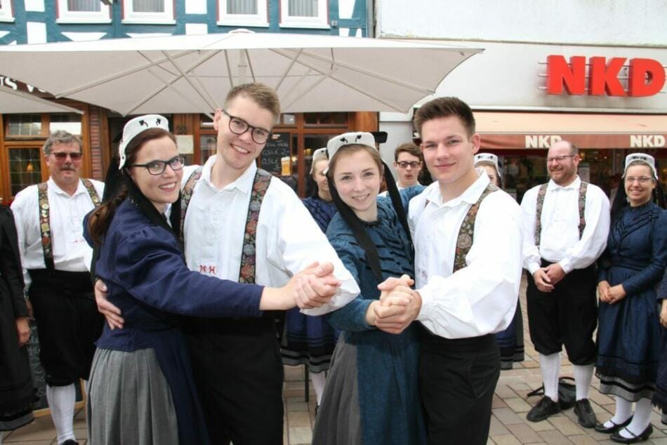 Auf Frankenbergs Straßen und Plätzen mischen sich dann spanische Flamenco-Rhythmen mit schottischem Dudelsack und deutscher Blasmusik, es wird gesteppt, „geschuhplattelt“, gesungen und mit dem Publikum gefeiert – ganz nach dem gemeinsamen Motto „Einheit in Vielfalt“.