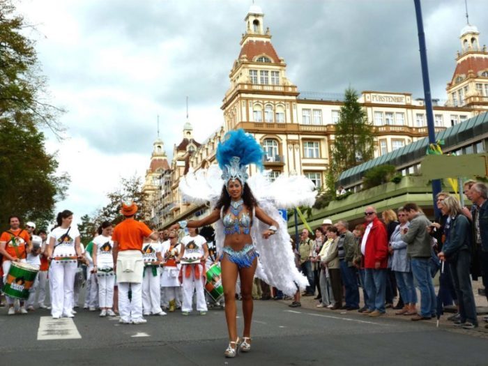 Mehr als 40 internationale Samba-Gruppen mit über 1000 Musikern werden die Badestadt wieder in Stimmung und zum Tanzen bringen: Da wird der Homberg „zum Zuckerhut“ und ein sympathischer Hauch von Copa Cabana liegt an den drei Festivaltagen über der eleganten Flaniermeile „Brunnenallee“.