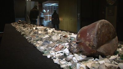 So wurden die zerstörten Gebäude zusammen geschoben und bilden heute den Rosenhang in der Karlsaue. Heute 70 Jahre später kommen die Bruchstücke bedingt durch die Erosion an die Oberfläche. Der Kasseler Künstler Wolfgang Luh hatte die Stücke vier Jahre lang am Rand der Karlsaue gesammelt und jetzt in der Elisabeth Kirche in Kassel der Öffentlichkeit zur Schau gestellt. Harald Dölle aus Kassel kann sich noch an die Bombennacht erinnern. Die Ausstellung ist noch bis zum 03. November Dienstag bis Sonntags von 12 bis 18 Uhr geöffnet.