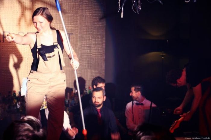 Als KünstlerInnen zu Gast in der vierten Auflage der Veranstaltungsreihe “Abendrot” waren: Tänzerin Verena Piwonka, Luftgitarrist Martin Raddatz, Sängerin Romana Reiff, Billi Idol Performer Roger Kane und DJ Soul Sell.