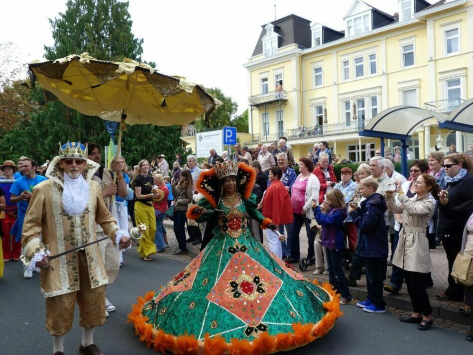 Farbenfroh gekleidete, lebenslustige Sambistas und perfekt aufeinander eingespielte ganze Batterias trommeln heiße Rhythmen auf der Brunnenallee und ziehen die Zuschauer in ihren Bann. Attraktive Tänzerinnen in prachtvollen Federkostümen verbreiten einen Hauch von Copacabana und Zuckerhut, wenn sie bei diesem sehenswerten Umzug auf der Straße gekonnt die getanzte Samba in ihrer schönsten Form präsentieren. Auf so viel gute Laune, unbeschwerte Fröhlichkeit und pure Lebenslust kann und möchte eine Gesundheits- und Wohlfühlstadt wie Bad Wildungen nicht verzichten.