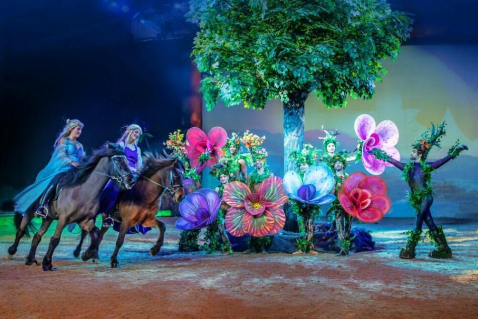 Eine schöne Geschichte ist aber noch nicht alles. Es sind vor allem die atemberaubenden Pferde-Choreografien, die bei „Welt der Fantasie“ die verschiedenen Reitweisen und Rassen perfekt in Szene setzen und so hunderttausende Zuschauer begeistern.
