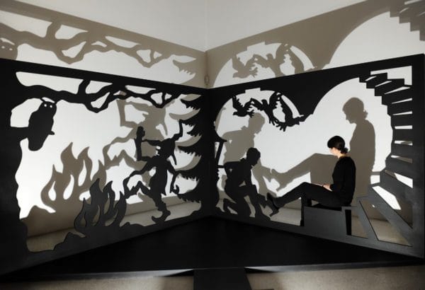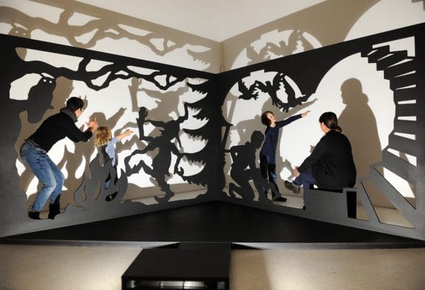 Nun tritt der Besucher ein in einen neuen thematischen Bereich: Sechs Schattenrisse der Künstlerin Luise Neupert aus der Grimm-Sammlung der Stadt Kassel aus der Reihe »Dornröschen« und »Rapunzel« prägen das Zusammenspiel von Gut und Böse in den »Licht- und Schattenwelten«. Hier können Besucher auch beim Einstieg ins Schattentheater mit Rumpelstilzchen zusammen tanzen. Und mal ganz ehrlich: Wer wollte sich nicht einmal als Aschenputtel den Schuh vom Prinzen anziehen lassen? Beides ist hier möglich.