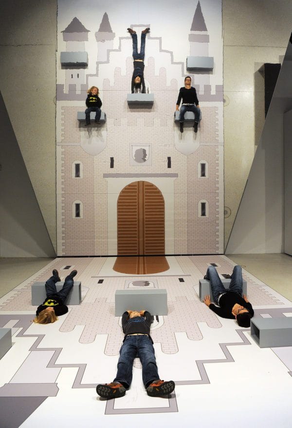 Um zum nächsten Bereich »Der Schlüssel zum Schloss« zu gelangen, ist eine weitere Besucherentscheidung gefragt. Besuche ich das Schloss als Mensch oder als Tier? Möchte ich wie eine Prinzessin in das Schloss hineintanzen oder wie ein Frosch hineinhüpfen? Hier hüpft oder tanzt der Besucher hinein in eine Welt der Perspektivwechsel, die ihn staunen und verweilen lässt: Die Gesetze der Schwerkraft gelten nicht mehr. Wer wird optisch hier ganz entspannt zum Fassadenkletterer?