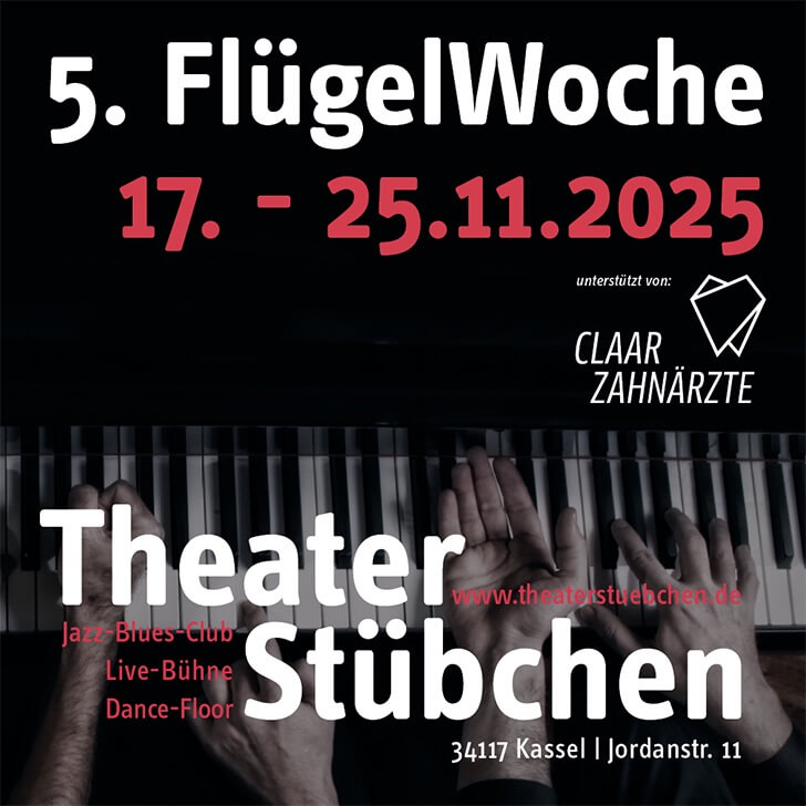Eine fünftägige Konzertreihe im Theaterstübchen Kassel, bei der das Klavier als zentrales Instrument des Jazz im Fokus steht. - Wann findet die 5. Flügelwoche statt?