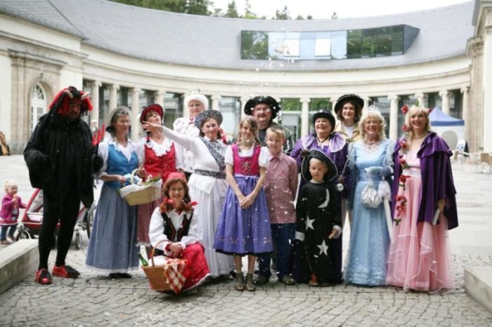 Märchenhafte Begegnungen im Kurpark. Da bummelt man sonntagnachmittags durch den Kurpark und begegnet unvermittelt: den bekanntesten Figuren aus den berühmten Märchen der Brüder Grimm. Bezaubernd kostümierte Märchenfiguren flanieren zum Festival auf Wegen, unter schattigen Bäumen und durch die Wandelhalle und lassen sich gern mit Ihnen oder Ihren Kindern/Enkelkindern fotografieren.