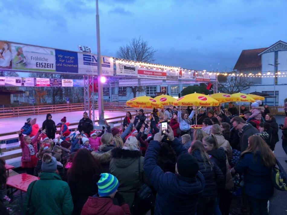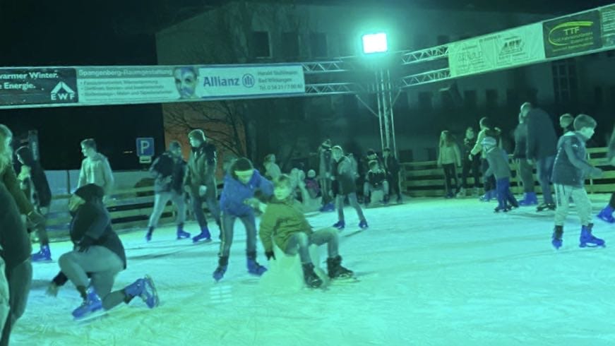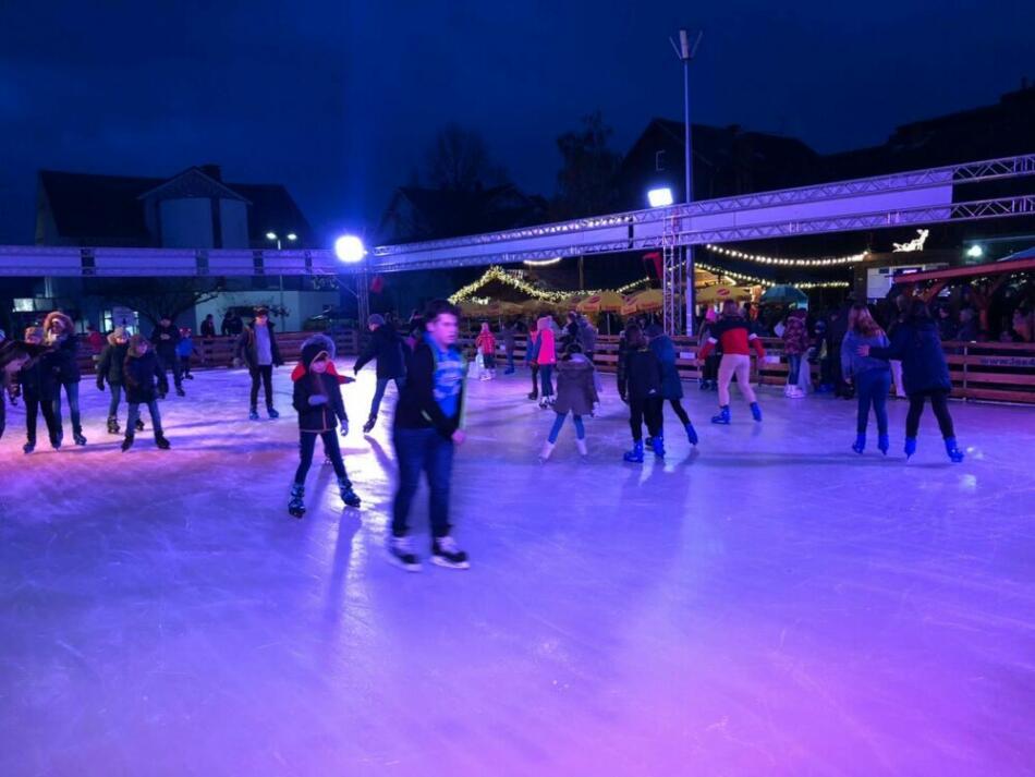 Eure Schlittschuhe könnt ihr natürlich mitbringen oder welche leihen. Die Größen 28 bis 48 sind vorhanden. Und noch eine gute Nachricht: Die Eislaufbahn, die am vergangenen Mittwoch eröffnet wurde, wir weit über das Weihnachtsfest hinaus, nämlich bis zum 12. Januar täglich mit Ausnahme Heiligabend zur Verfügung stehen, an den Wochenenden sogar bis 22 Uhr.