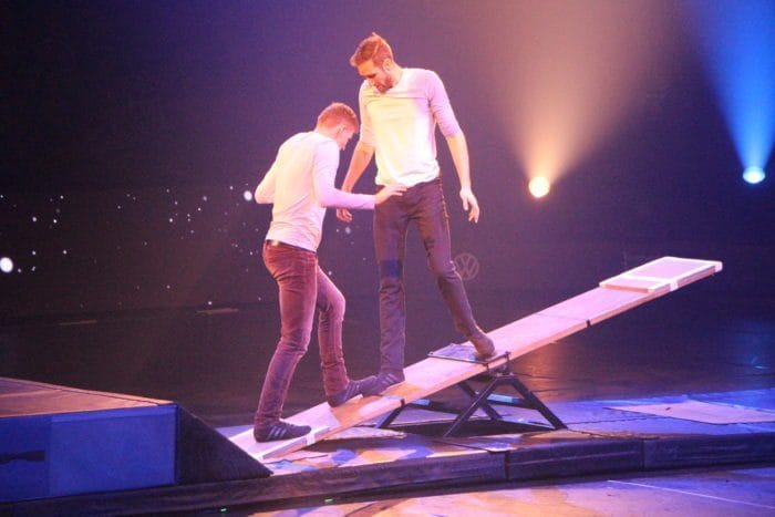 Connected Tournee in Kassel – Hier Jules und Jerome mit Comedy auf dem Brett.