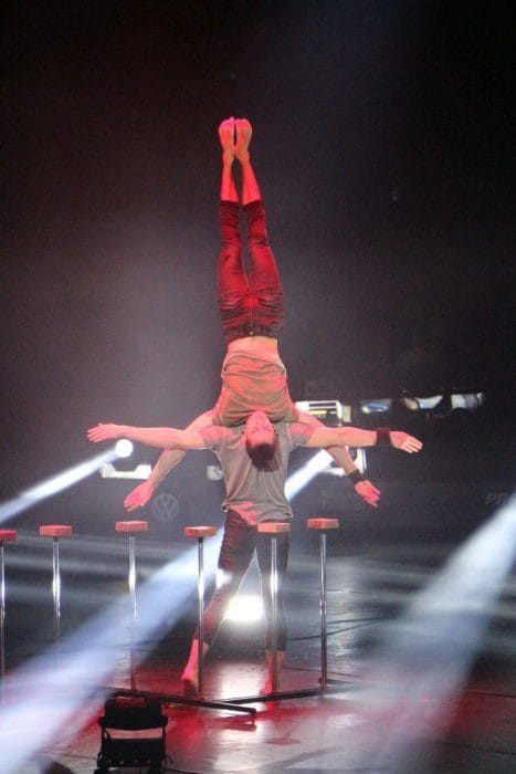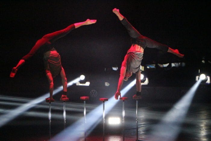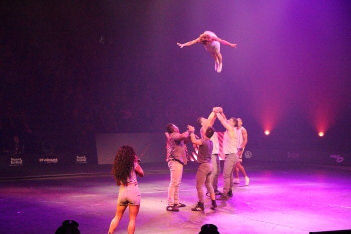 Was sich da abspielt, ist keine Szene aus einem Actionfilm, sondern eine eintrainierte Show – die Connected Tournee der Artisten, das Feuerwerk der Turnkunst! Der Wildwechsel berichtete bereits im Voraus.