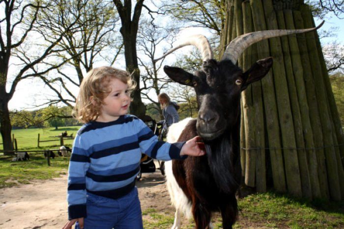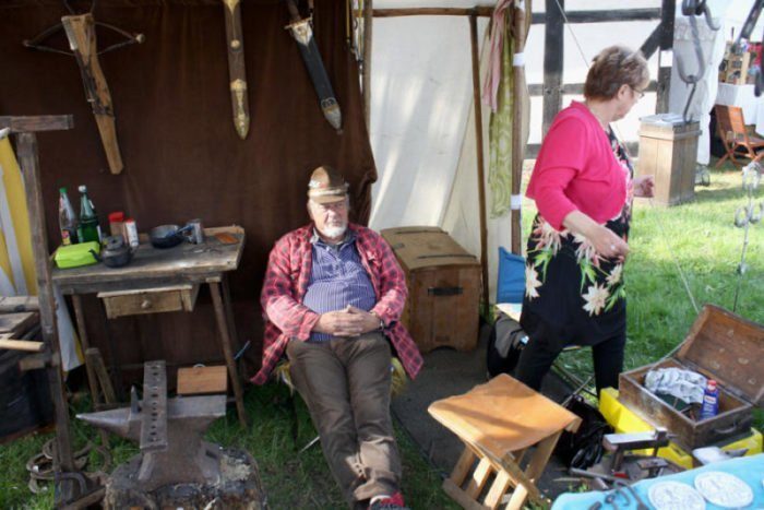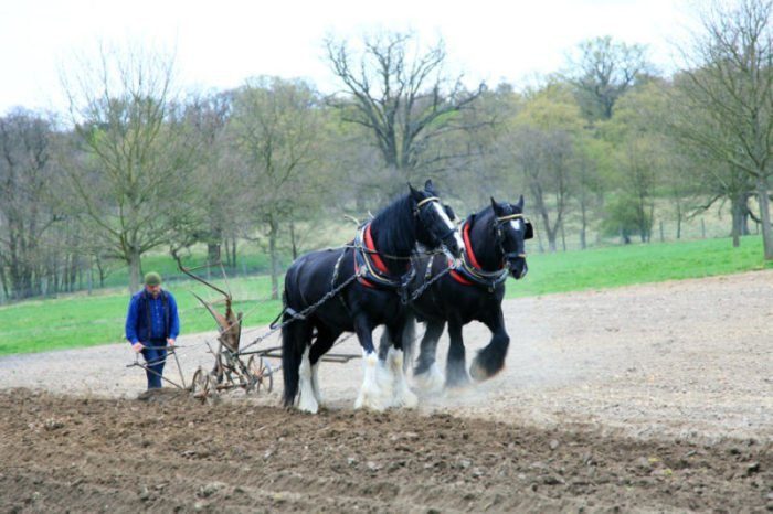 Am Nachmittag konnten Besucher bei Haustiervorführungen ein Stückchen „gute alte Zeit“ live erleben: Skuddenschafe wurden mit Border Collies gehütet. Und wie einst wurden Kaltblutpferde und Rinder auf dem Acker zum Pflügen, Eggen, Säen und Pflanzen eingespannt. Etwas moderner ging es zu, wenn dann mit altem Traktor und Pflanzmaschine Kartoffeln – wie noch vor 50 Jahren – in die Erde gelegt und angehäufelt wurden. Für Kinder wurde Pony reiten angeboten.