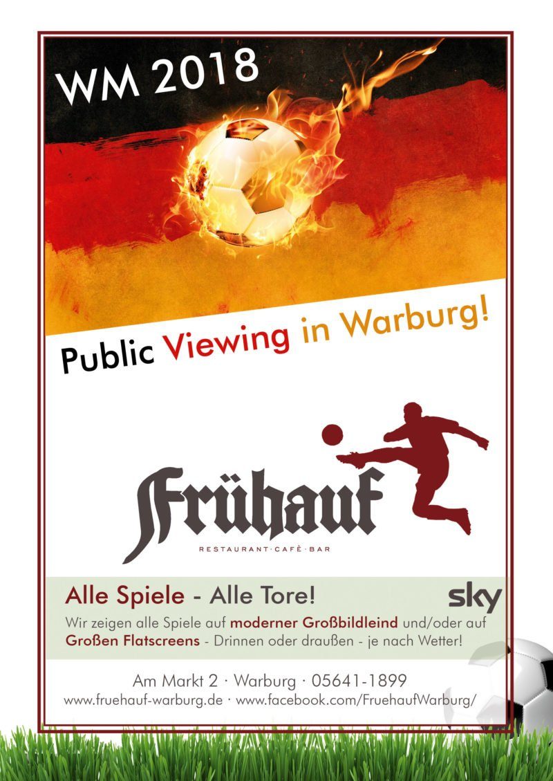 Bald rollt er wieder, der Ball, und die Fußball-Weltmeisterschaft 2018 in Russland wird in alle Welt ausgestrahlt. Da bietet es sich an, beim sogenannten „Public Viewing“, oder – neudeutschem – „Rudel-Gucken“ gemeinsam mit anderen Fußball-Begeisterten die Spiele zu verfolgen. Das geht auch im Frühauf in Warburg.