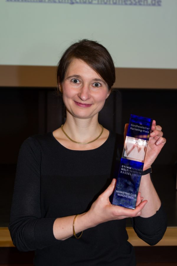 (Kassel, 24.03.2017) Große Freude für die GRIMMWELT Kassel! Geschäftsführerin Susanne Völker darf den 12. Marketingpreis entgegennehmen – für ein stimmiges Marketingkonzept in mehrfach preisgekrönter Architektur. Am Donnerstagabend wurde der Preis im feierlichen Rahmen des Ständehauses vergeben.