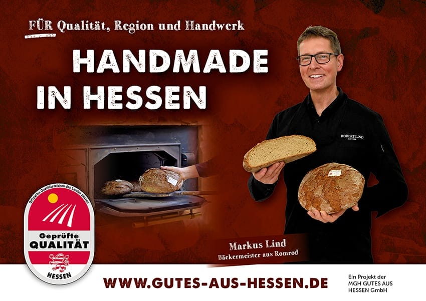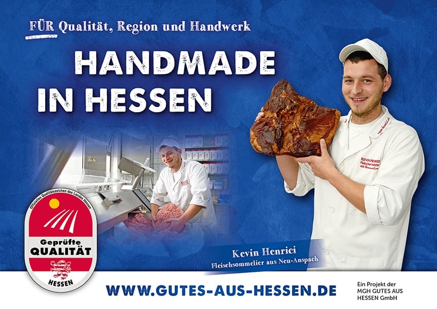 Unter dem Motto „Handmade in Hessen – für Qualität, Region und Handwerk“ rückt die MGH auf verschiedenen Plakatmotiven hessische Bäcker und Metzger in den Fokus, die ihre Produkte selbst herstellen, ihre Rohstoffe aus der Region beziehen und wegen der hohen Qualität ihrer Ware die Zertifizierung „Geprüfte Qualität – HESSEN“ beziehungsweise „Bio aus HESSEN“ haben. Die Plakatkampagne startet in Kürze hessenweit und wird vor allem von einer Facebook-Aktion begleitet.