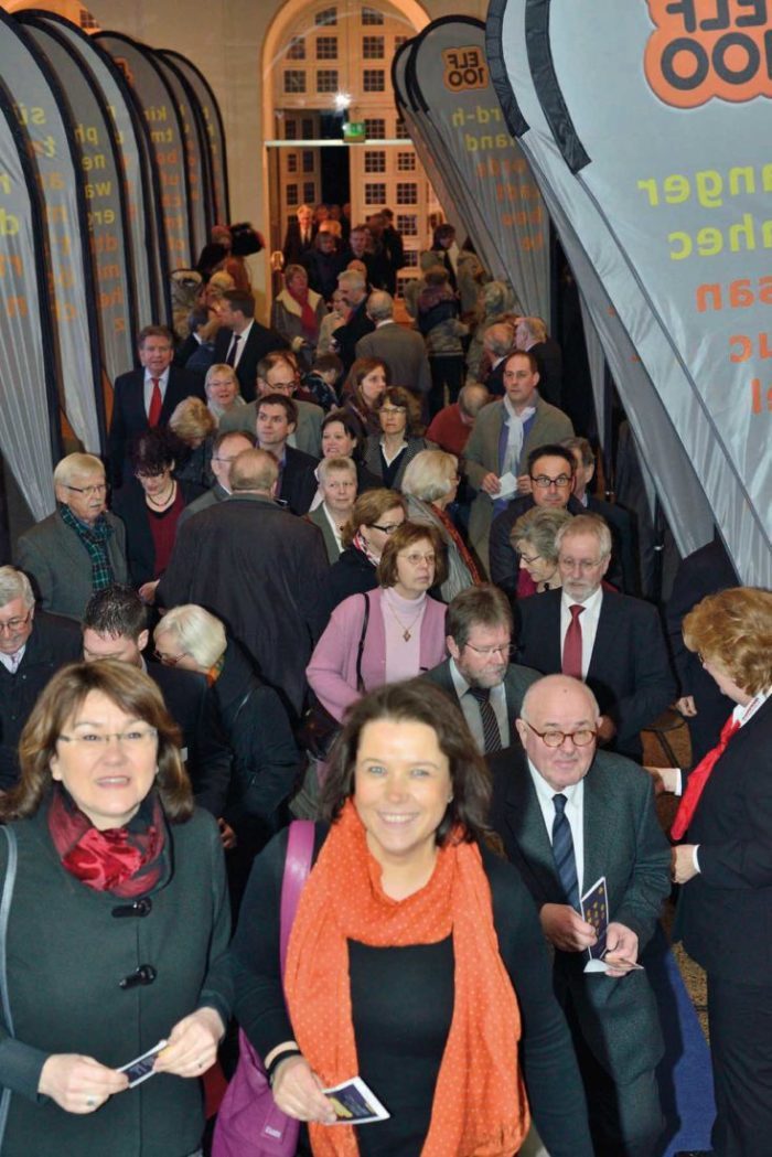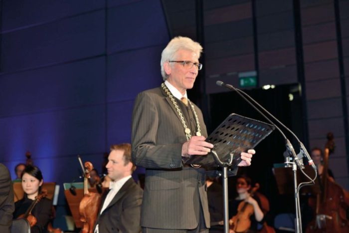 Oberbürgermeister Bertram Hilgen betonte bei dem Festakt, dass das Stadtjubiläum „ein Fest von Bürgern für Bürger“ sei – nicht von oben herab zelebriert, sondern aus der Mitte der Stadtgesellschaft heraus gestaltet. Rund 2000 Veranstaltungen mit mehreren tausend Mitwirkenden in allen Teilen der Stadt, in Vereinen, Initiativen, Unternehmen und Institutionen werde es geben. Hilgen: „Ich freue mich sehr darüber, dass so viele Menschen, zum überwiegenden Teil ehrenamtlich, der Einladung zum aktiven Mitgestalten des Jubiläums gefolgt sind“. Das Stadtjubiläum werde sicher dazu beitragen, dass die Stadtgesellschaft noch enger zusammenwachsen wird. Hilgen bedankte sich ganz herzlich beim Büro 1100 um Projektleiter Hans-Jochem Weikert für die hervorragende Organisation der Veranstaltung. „Das Team hat klasse gearbeitet und in der Vorbereitung an viele Details gedacht.“