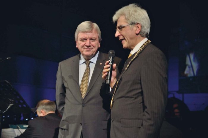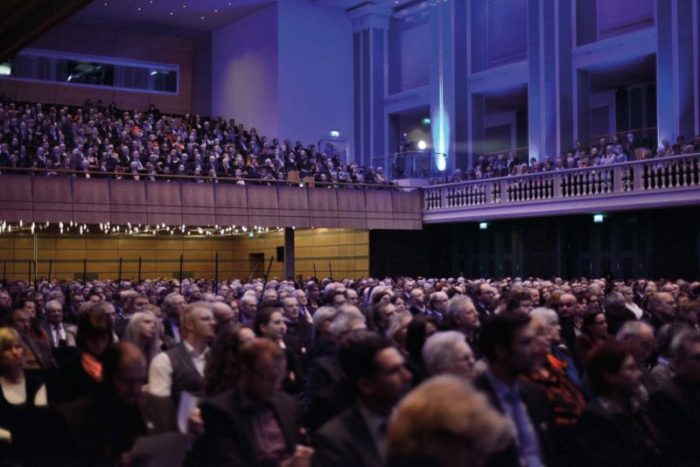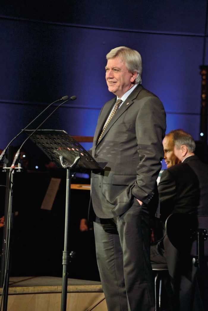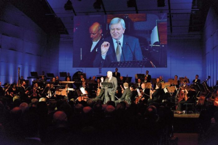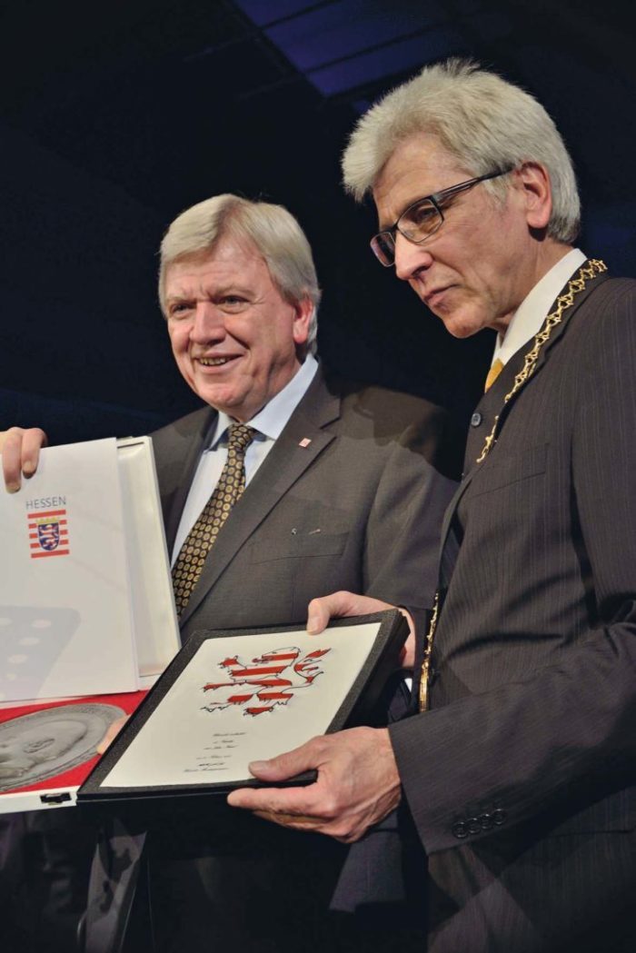 Das Staatsorchester hatte schon beim Auftaktstück für donnernden Applaus gesorgt. Im Anschluss begrüßte Moderator Prof. Hubertus Meyer-Burckhardt Gastgeber Bertram Hilgen und Ministerpräsident Volker Bouffier. Der Oberbürgermeister freute sich besonders über die Verleihung der Freiherr vom Stein-Plakette an die Stadt Kassel durch das Land Hessen. Weiterer Höhepunkt waren die Weltpremiere des Films „Virtuos Virtuell“ zur Ouvertüre der Louis-Spohr-Oper „Der Alchymist“ von Maja Oschmann und Thomas Stellmach sowie die Festreden von Karl Garff, Nora Gomringer und Peter-Matthias Gaede.