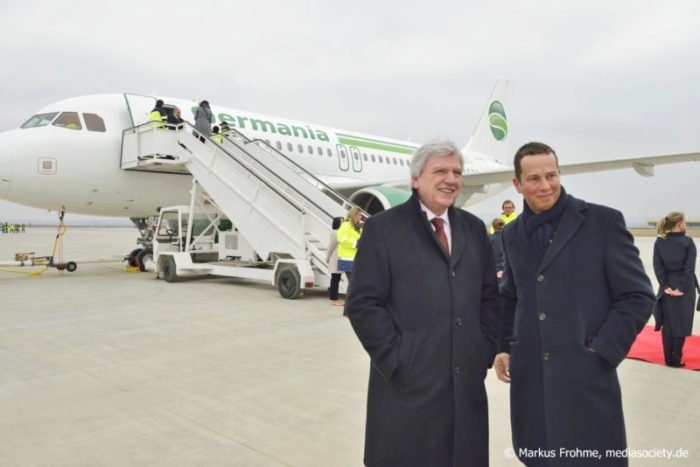 Den Kritikern des Flughafens Kassel-Calden schleuderte er entgegen, dass man selbstverständlich immer klug bedenke, was man mit öffentlichem Geld tue. Er fragte, was denn die Alternative zum Flughafenausbau gewesen sei: Der alte Flugplatz sei nicht zukunftsfähig gewesen. Man hätte ihn abwickeln können oder die Herausforderung annehmen. Nordhessen sei eine Region mitten in Europa und eine der dynamischsten Regionen Deutschlands. „Das eröffnet Chancen für die Zukunft, die es ohne diesen Flughafen gar nicht gäbe […] Unser Anspruch ist, dass dieser Erfolg nachhaltig ist!“ Seiner Meinung nach werden die großen Flughäfen irgendwann an die Grenze ihrer Belastbarkeit kommen. „Auch bezogen darauf, was man den Menschen in der Region zumuten kann.“ Daraus erwüchsen Chancen für Kassel. „Deshalb ist dieser Tag ein Ansporn für uns zu zeigen, dass die Entscheidung richtig war.“ Der Flughafen sei etwas, worauf die Region stolz sein könne.