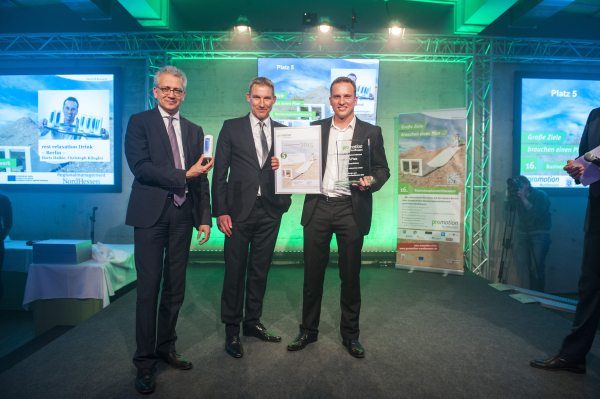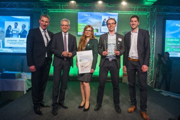Über den Sonderpreis Dezentrale Energien und damit 2.000,- Euro kann sich prosumergy aus Kassel freuen. Zusätzlich prämiert wird damit die Idee, die Nutzung Solarstrom vom eigenen Dach auch Mietern zu ermöglichen (Platz 4 im Wettbewerb).