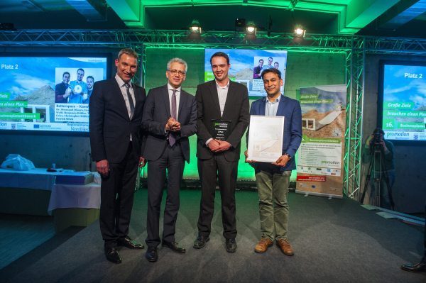 Der mit 2.000,- Euro dotierte Umweltpreis wird an die Firma Betterspace verliehen. Die Firma hat ein intelligentes System zur automatisierten Steuerung der Heizung in Hotel- und Büroräumen entwickelt (Platz 2 im Wettbewerb).