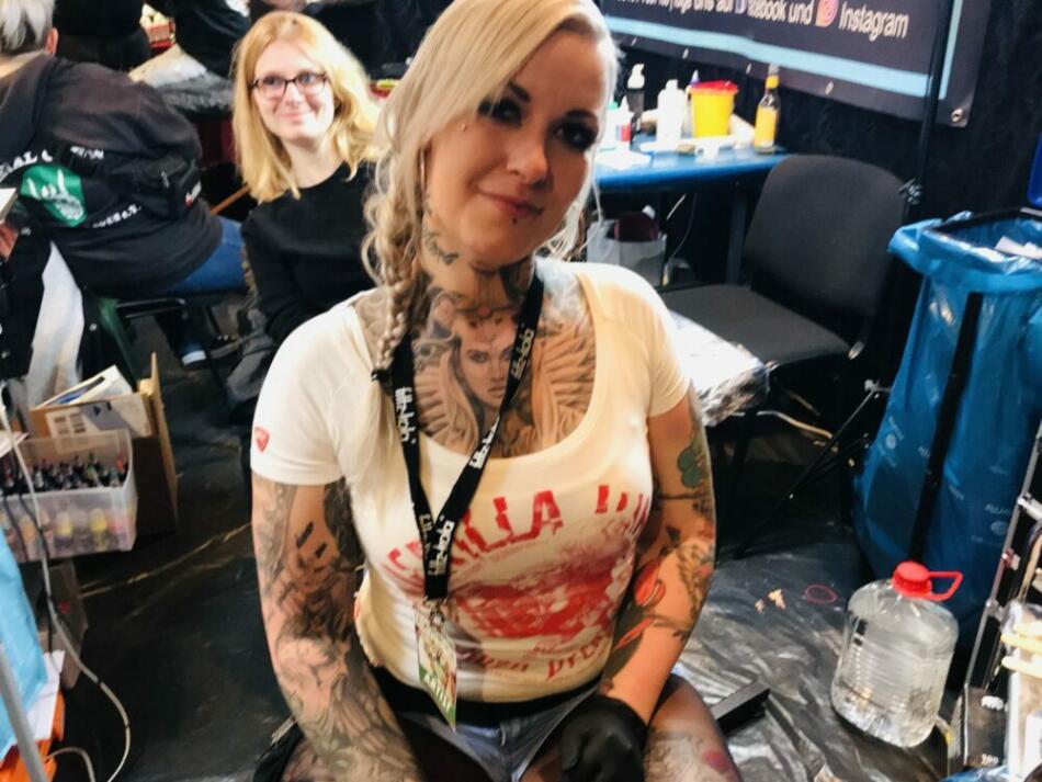 Allgegenwärtig war Makani Terror, weltweit gefragtes Tattoo-Fotomodell (320.000 Follower auf Insta), das schon die Titel der angesagten Szene-Magazine in den USA, Mexiko, Irland, Taiwan, Australien, Ungarn, Spanien und einem Dutzend anderer Länder, insgesamt 42, zierte.