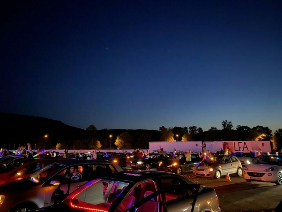 Am 12.6.2020 um 19:30 Uhr war es dann soweit. Die Schranken des Marburger Autokinos wurden geöffnet. Die wartenden Autos (zum Teil aus umliegenden Städten wie Frankfurt oder Kassel) rollten langsam auf dem Messeplatz ein. Am Eingang wurden Autogrammkarten von Gestört aber GeiL und jeweils ein Lichter-Stick an jedes Auto verteilt.