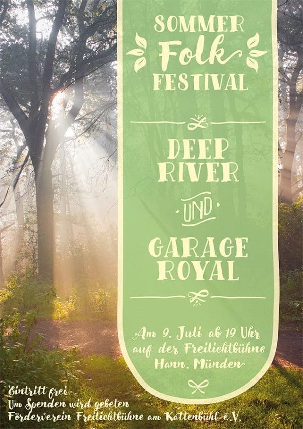 „Akustisch, ehrlich und mit Herz! Mit englisch- und deutschsprachigem Rock/Pop als auch eigenen Songs im Stile der Singer/Songwriter möchte ich am 9. Juli an der Freilichtbühne Hann. Münden diesen drei Attributen gerecht werden. Mit dabei? Nur meine Gitarre und mein Klavier! Ich freue mich sehr wieder an dem fast schon traditionellen Folk Festival mit Garage Royal und Deep River teilnehmen zu dürfen. Wir sehen uns am 9. Juli!“