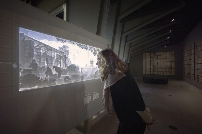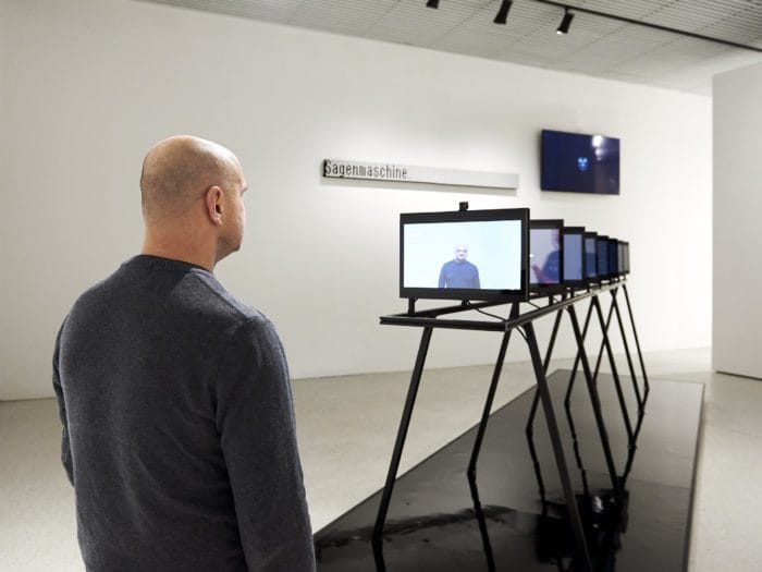 Hier wird der Besucher selbst Teil einer Geschichte: Über ein Live-Foto werden Attribute des Gesichts analysiert und Kennzeichen wie Alter, Geschlecht oder Größe mitsamt der Mimik zu einer eigenen Legende gesponnen, die auf Monitoren und einem Spruchband ausgespielt werden. Hier zeigt sich, dass es auch moderne Mythen gibt: Das »Digitale Erzählen« heute folgt jedoch ganz eigenen, algorithmischen Logiken.