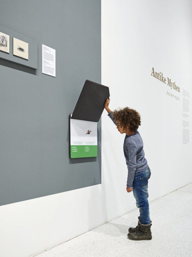 Für kleine Forscher ist auch in der Sonderpräsentation ein Rätsel-Rundgang ausgelegt: Hinter versteckten Klappen verbergen sich Motive und Fragen, die zur Lösung des Rätsels rund um Mythen und Sagen führen.