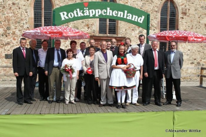 Karl-Heinz Vestweber, Vorsitzender des Vereins Rotkäppchenland e.V., hob die Bedeutung des Rotkäppchens und der Gebrüder Grimm für die Urlaubsregion hervor. „Es gilt, die schönen Landschaften und Angebote des Rotkäpchenlandes sichtbar zu machen, um den Gästen einen schönen Urlaub bieten zu können“, sagte Vestweber. Wir haben das Rotkäppchen in der Schwalm, so Vestweber, und er spannte damit den Bogen zur Neuzeit und Dorothee Weppler aus Willingshausen, die dem Rotkäppchenland ihr attraktives und modernes Gesicht gibt. Ihr Gesicht strahlt mittlerweile ja nicht nur von Prospekten und Flyern: selbst ein Rotkäppchenbus mit ihrem Konterfei ist europaweit unterwegs.