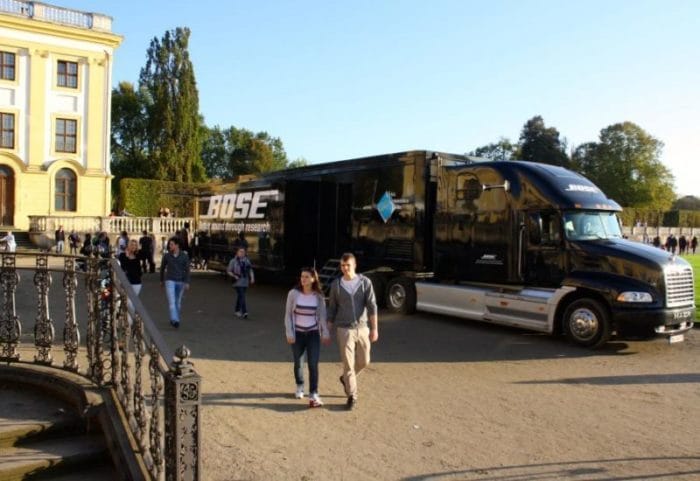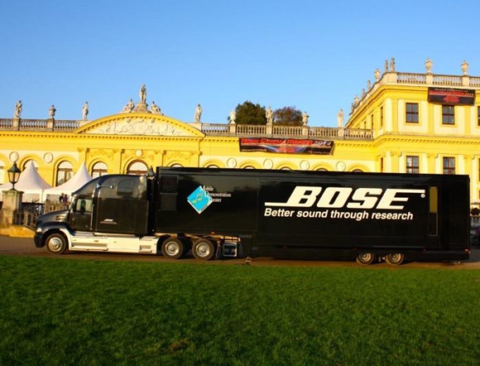 Die größte Präsentation im Bereich Sound, hatte der Hersteller BOSE! Sound Brothers ist laut BOSE Gebietsverkaufsleiter Michael Schultheis einer der umsatzstärksten deutschen Händler für das Unternehmen. Auf der Wiese vor der Orangerie, konnten Besucher in einem riesigem BOSE-Truck, eine Live-Präsentation in einer Art Minikino erleben. Neben dem Eingangsbereich der Orangerie, hatte BOSE zusätzlich ein Zelt aufgebaut, in dem die Besucher viele BOSE Produkte selber ausprobieren konnten, von Bluetoothlautsprechern, Kopfhörern bis hin zu den großen 5.1 Systemen.