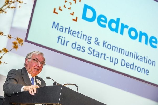 Die Jury hat entschieden: Den elften Marketingpreis gewinnt das Startup Dedrone für seine herausragenden Marketingleistungen und die Herausforderung, eine Marketingstrategie für ein Produkt auszuarbeiten, das auf dem Markt noch völlig neu war. Am Dienstagabend wurde der Preis im feierlichen Rahmen verliehen. Die Stadtverordnetenvorsteherin Petra Friedrich war in Vertretung von Schirmherr Oberbürgermeister Bertram Hilgen vor Ort.