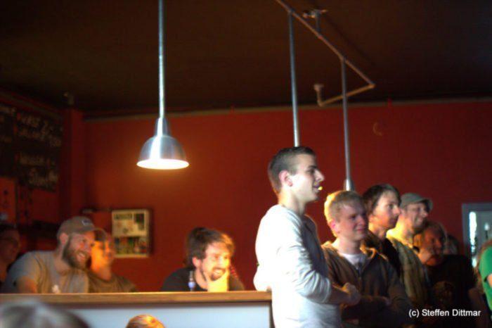 Mit handgemachtem akustischem Folk und Bluegrass, eingängigen mehrstimmigen Gesängen und schön skurrilen Songs erspielten sich die vier Jungs schnell Respekt beim aufmerksamen Sofapublikum. Problemlos gelang den Gunbrothers die Entführung der Anwesenden ins Jahr 1880, wo diese dann Bekanntschaft mit „Robert McGee“ machen durften, einem Kerl, der als einziger einen Indianerüberfall nebst Skalpieren überlebt hatte, fortan aber sehr hässlich und insgesamt unglücklich den Rest seines Lebens dahin vegetierte. Außerdem servierten sie „Good Wine in Dirty Glasses“, was im Vergleich zu schlechtem Wein in sauberen Gläsern natürlich eindeutig vorzuziehen ist. Verdient herzlicher Applaus für Musik, Humor und Weisheit aus dem Wilden Westen dürfte die vier Folks Jonathan Bentzer (Gitarre, Gesang, Banjo), Manuel Ohrndorf (Gitarre, Gesang), Philipp Böhm (Kontrabass) und Daniel Bentzer (Fiddle) motivieren, nun öfters etwas von sich hören zu lassen.