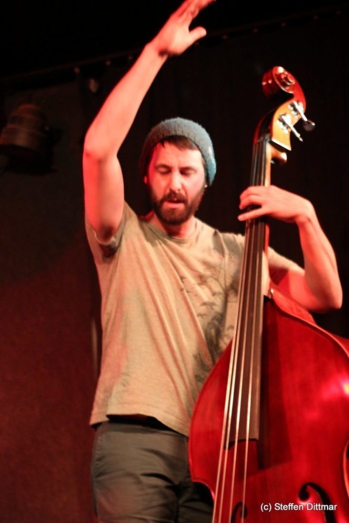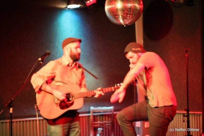 Bereits öfters zu hören und bekannter sind Frére de Song (in Anlehnung an den französischen Begriff für Blutsbrüder). Dahinter verbirgt sich das Projekt von Sänger und Gitarrist Matthias Breckle, der sich je nach Anlass von verschiedenen Musikern und Besetzungen begleiten lässt. Mit Marcel Engler war am Samstag ein Partner im Boot, der mit Kontrabass, Trompete, Flöte und Percussion bis hin zum Löffel für Vielseitigkeit und filigrane Finesse sorgte. In Kombination mit den kryptischen Songs über Trennung, Offenbarung und Umkehr boten die beiden bezaubernd sanfte Musik.