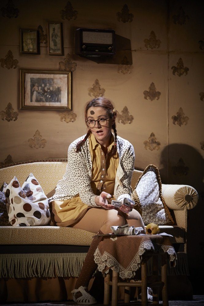 Am vergangenen Freitag (10.1.2014) feierte das Stück „Mary & Max“ im Theater Paderborn Premiere. Ein bißchen wie Pippi Langstrumpf wirkte die „kleine“ Mary, als sie die Bühne betrat. Mit zwei Zöpfen und einem gelblichen, zu kurzen Kleidchen. Zwar hat das Mädchen mit dem Muttermal auf der Stirn Eltern, doch die sind nicht für sie da: Der Vater arbeitet in einer Teebeutelfabrik oder stopft tote Vögel aus, die er an der Landstraße findet. Marys Mutter trinkt ständig „Tee für Erwachsene, der ständig gekostet werden muss“ und den die Großen auch Sherry nennen.