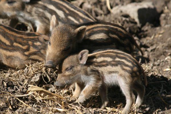 Tiernachwuchs gibt es zu entdecken: Lämmchen bei den Schafen und Ziegen, Kälber bei den Heckrindern, Frischlinge bei den Wildschweinen und Ferkel bei den Wollschweinen.