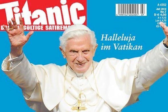 Der Papst fühlt sich von den Titelbildern der »Titanic« gedemütigt , auf dem seine Soutane mit einem gelben Urinfleck verunziert wurde, und in seiner Ehre verletzt. Selbst der Deutsche Presserat rügt jetzt das Satire-Magazin laut dapd: „Die Darstellung von Papst Benedikt XVI als inkontinent und mit Fäkalien beschmiert sei entwürdigend und ehrverletzend.“ Die Reaktion der Satire-Zeitschrift, so die Nachrichtenagentur weiter, sei „vollkommen überrascht“ gewesen. (Quelle: