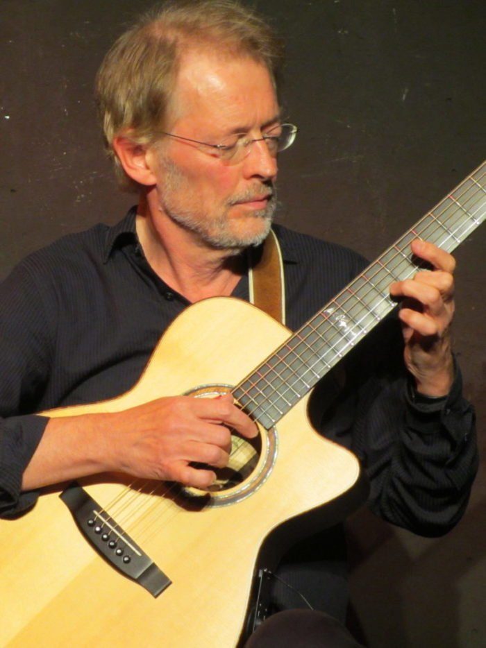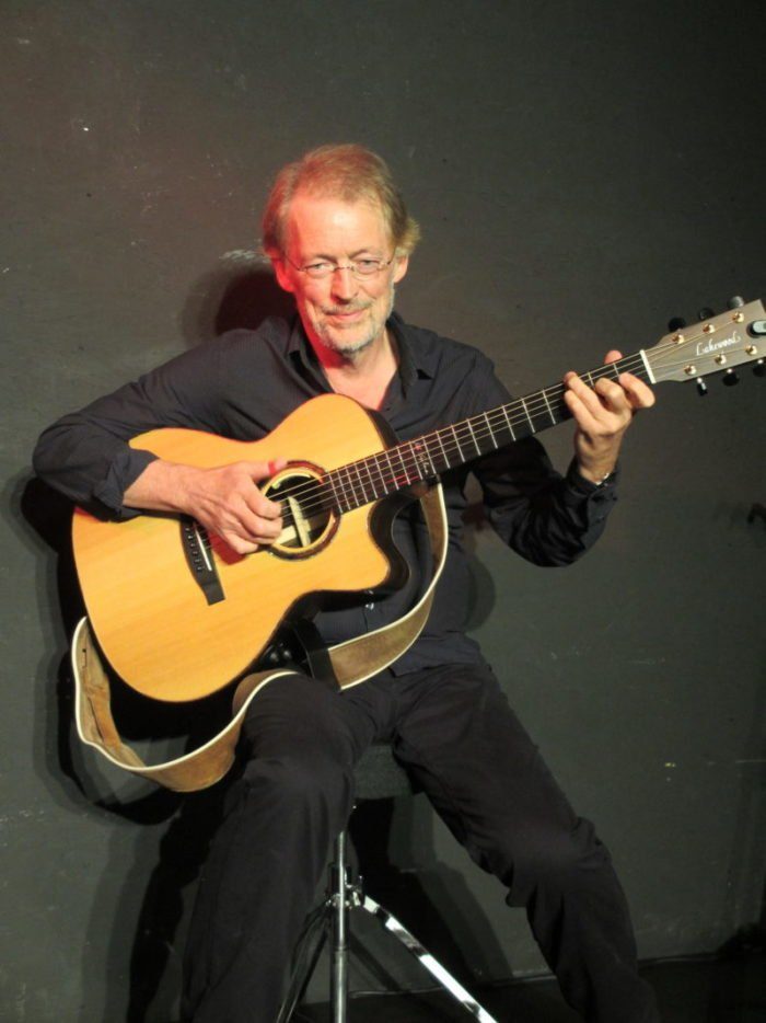 Für weitere klangliche Abwechslung sorgten der Wechsel zwischen der sechssaitigen und der zwölfsaitigen Gitarre sowie verschiedene Tunings, zum Beispiel beim Stück „Northern Sweet“ von seiner aktuellen CD „In a Constant State of Flux“, bei dem ein dorisches Tuning und der Kapodaster im vierten Bund für keltisch anmutende sowie zart klingende Stimmung sorgen. Eine wiederum ganz andere Klangfarbe erzeugte der Bottleneck-Einsatz beim Valpolicella Express, bei dem ein Zug erklingt, der über die Alpen fährt, um Rotwein abzuholen.