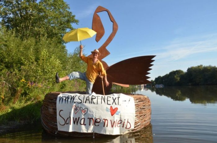 Arnd Drossel, Bildhauer und Aktionskünstler aus Beverungen, hat Großes vor. Er wird auch 2012 wieder eine, für Drossels Kunstverständnis so typische, Symbiose aus Kunst und sozialem Engagement geben. Seit dem 12. Mai zierte eine vom Künstler angefertigte Schwanenskulptur die Karlsaue.