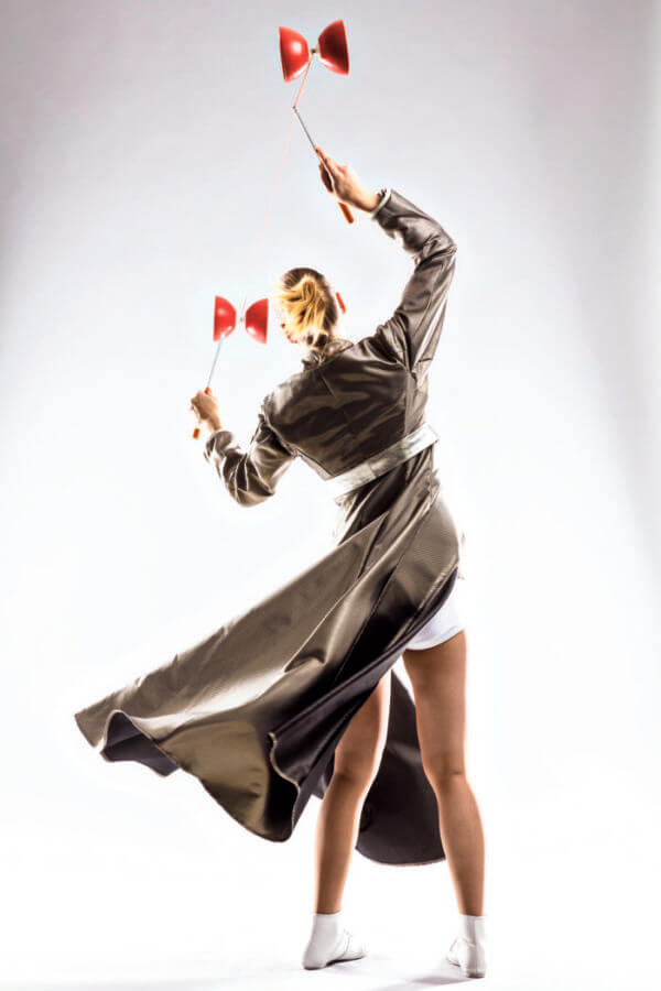 Lena Köhn (Diabolo-Jonglage) – Nahezu unmöglichen Figuren dürfen wir von Lena erwarten. Ihre chinesischen Doppelkreisel wirbelt die Artistin mit Eleganz und Charme durch die Luft und fängt sie doch immer wieder sicher auf.